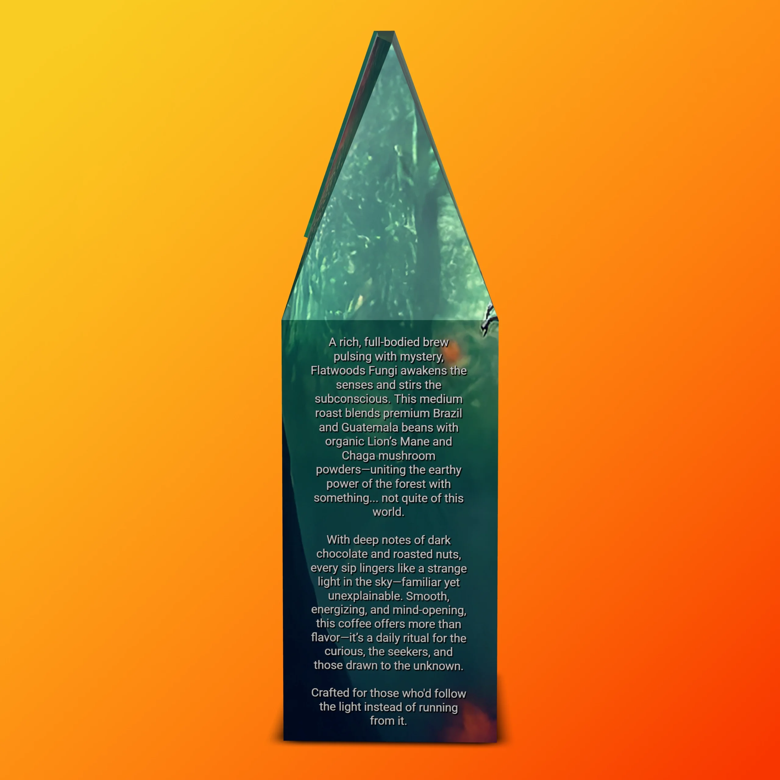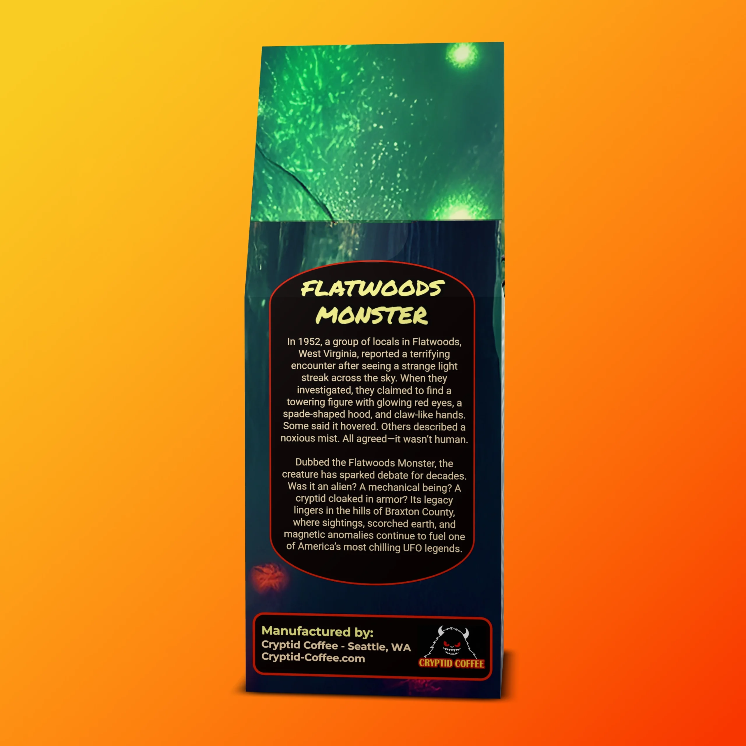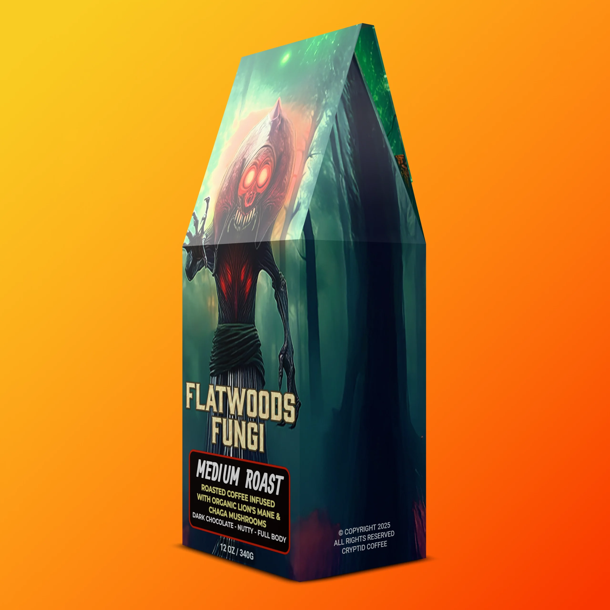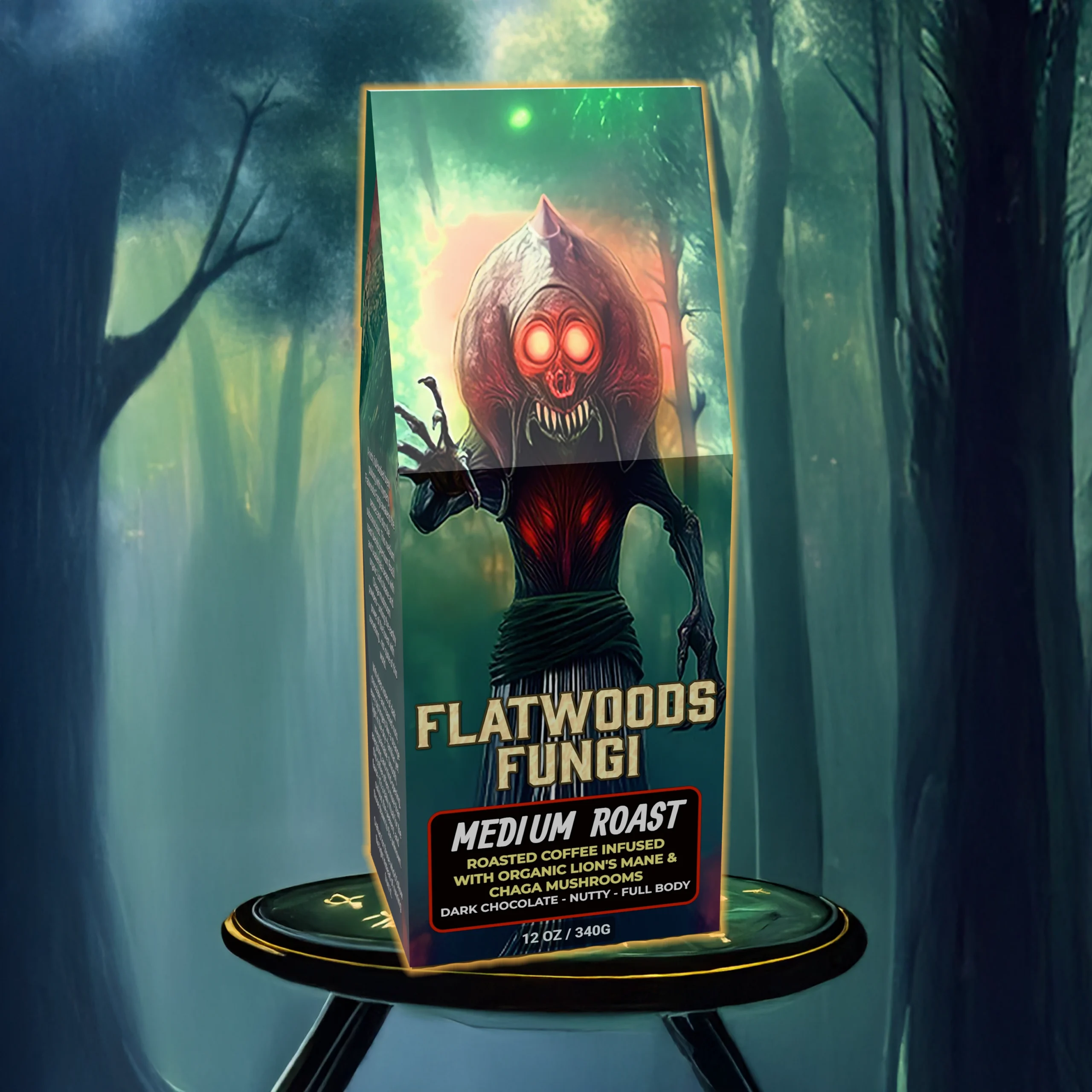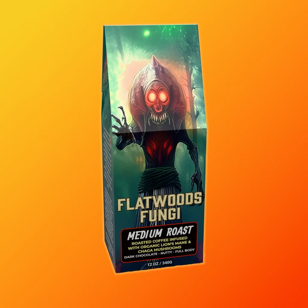 Flatwoods Fungi honors that encounter — the merging of earth and star, of science and superstition. It’s a brew for the curious, the seekers, the ones who feel both roots and starlight calling. Drink deeply, clear the fog, and let each cup be a reminder that not all monsters come from the dark — some arrive to wake the mind.
