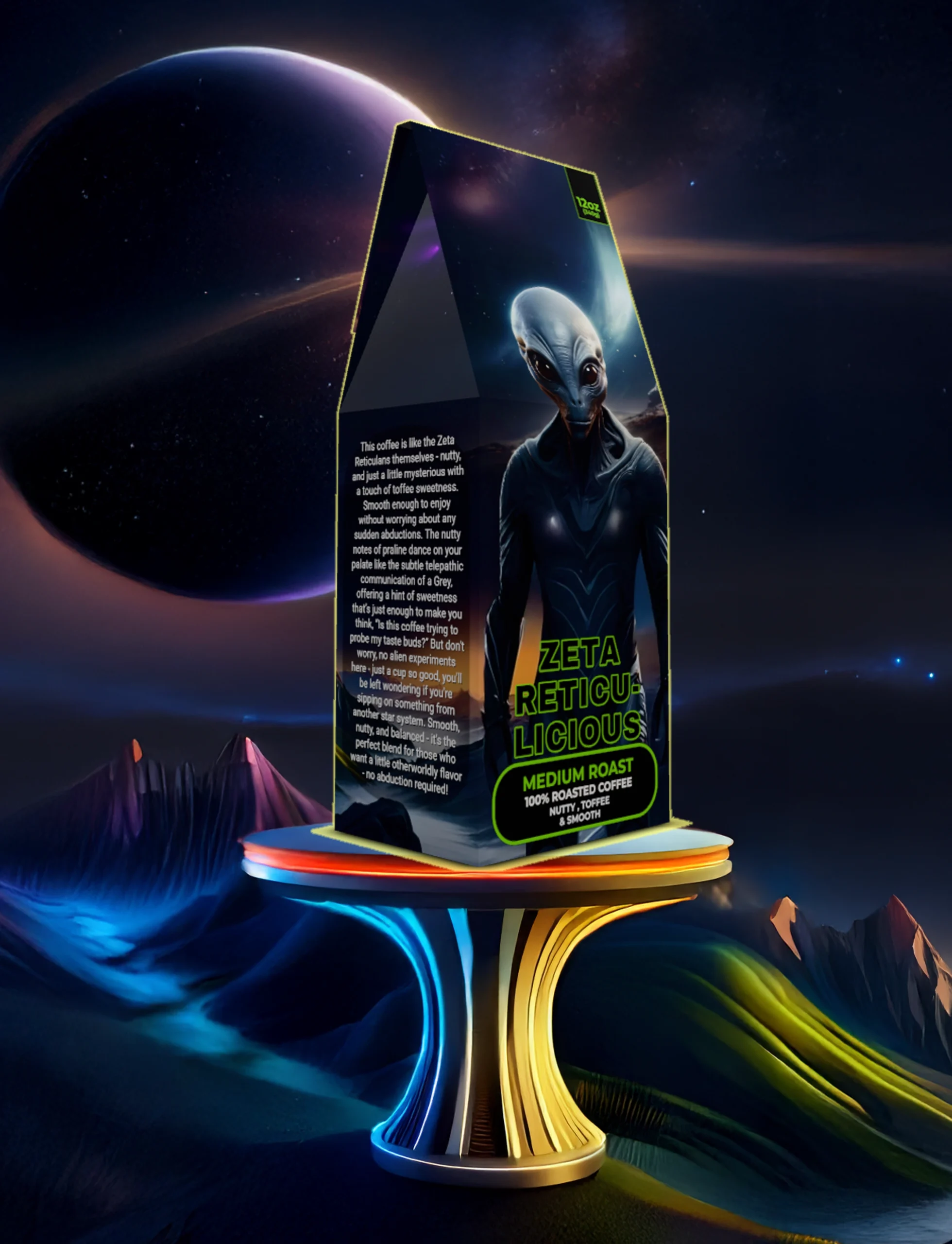 Really good flavor with a nice nutty taste. I drink it black most days and it always feels clean and balanced. The Zeta theme is fun and fits the vibe perfectly.